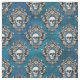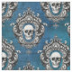 White skulls inside gothic frames are over a teal background. Very Halloween!