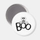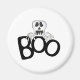 Scary Halloween tote bags, T-shirts, mugs, magnets, buttons, and more featuring a skull and hand bones holding on to text that reads "BOO"!