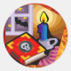 Skull Book, Candle Stick and Bat Outside Classic Round Sticker