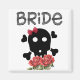 Cool skeleton bride design for hip brides,Gothic Brides or Halloween brides. This skull has a red bow and red flowers and the word bride in black and white.