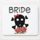 Cool skeleton bride design for hip brides,Gothic Brides or Halloween brides. This skull has a red bow and red flowers and the word bride in black and white.