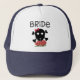 Cool skeleton bride design for hip brides,Gothic Brides or Halloween brides. This skull has a red bow and red flowers and the word bride in black and white.