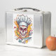 This is a standard metal lunchbox that appears to work just fine. We designed this box ourselves with an uploaded photo and custom text on the front and back. It looks absolutely beautiful except the front of the lunchbox is not centered like it shows in the photo. The print borders don't align with the inset flat part of the box where the preview photo online showed it perfectly centered in there. The back looks nice and centered though.