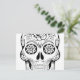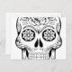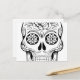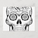 Skull drawing with black ink in white background postcard
