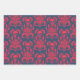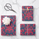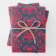 Skull Flame Damask in clashing red on blue Wrapping Paper Sheet