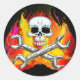 Skull Flames and Crossed Chrome Wrenches Classic Round Sticker