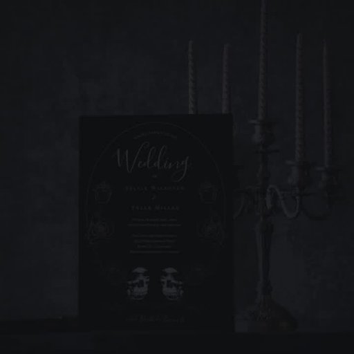 A stylish, gothic, wedding magnetic invitation in black, gold tones, and white. It features the couple represented as two skulls in a floral frame with roses. This invitation mixes a memorable mood with elegance, letting you design your wedding as you choose. Simply customise the text, add this invitation to your cart, then have a wedding that sees past the surface and cuts to what’s beneath.