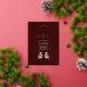 A stylish, gothic, wedding invitation in dark burgundy, gold foil, and white. It features the couple represented as two skulls in a floral frame with roses. This invitation mixes a memorable mood with elegance, letting you design your wedding as you choose. Simply customise the text, add this invitation to your cart, then have a wedding that sees past the surface and cuts to what’s beneath.