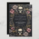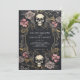 Inspired by the haunting beauty of Halloween and infused with a touch of goth glam, this dazzling Skull Gothic Floral Dark Wedding Invitation sets the stage for a wedding celebration like no other. Delicate floral motifs entwine with sinister skulls, creating a captivating contrast of elegance and darkness. Crafted with meticulous attention to detail, this gorgeous invitation conveys the spirit of a dark romance, making it perfect for couples seeking a distinctive and memorable wedding experience. The elegant typography, enigmatic colour palette and intricate design lend an air of mystery, while the gothic elements add an exquisite touch to your special day. Customise the text size, colours, font styles, and placement to your liking using the design tool.