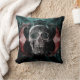Skull Gothic floral teal black red texture grunge living room throw pillow. Creepy, evil, scary, spooky Halloween design. Image copyright Marg Seregelyi Photography.