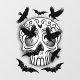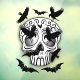 Decorative Sugar skull, Dia De Los Muertos Logo Element with Crows, Ravens, Bat assembled to compose a creepy Halloween Vector Design. Original Art Copyright BluedarkArt TheChameleonArt.