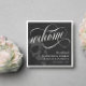 Elegant dark Halloween or goth wedding welcome napkins with welcome written in a swirly white calligraphy script. Add your names and wedding date against a black background with a grey skull. Add a touch of dark romance to your goth wedding with these elegant luncheon napkins! These black, white, and grey napkins feature a swirly calligraphy script and a skull, perfect for your unique and stylish goth wedding. Your guests will love the sophisticated yet on theme design of these napkins.