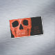 Gothic skull head neon orange black creative texture design. Trendy tattoo artist professional magnetic business cards for the tattooist. Cool, unique, scary, modern vintage style. Image copyright Marg Seregelyi Photography.