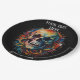 Skull Head with multi-colored Paint Splashes Paper Plate