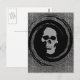 A lone grey skull sits in a swirling black void on a static looking grey background.