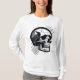 The image shows a stylized human skull seen in profile. The shape of the skull is simplified with clear lines and overlapping geometric shapes, creating a modern visual effect.