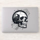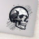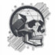 The image shows a stylized human skull seen in profile. The shape of the skull is simplified with clear lines and overlapping geometric shapes, creating a modern visual effect.