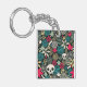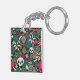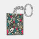 Skull in flowers key ring