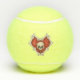 These tennis balls have a white skull in the centre of a red heart that is outlined with a border of white bones on the front and back.