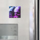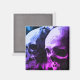 A refrigerator magnet design using skulls with a purple/blue colour scheme.