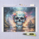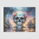 This tissue paper design features a striking skull adorned with vibrant, colourful flowers, creating a beautiful contrast with its skeletal form. The backdrop is a delicate, pastel landscape with soft rolling hills and majestic castles perched in the distance. The combination of the skull's bold floral decorations and the dreamy, serene scenery evokes a sense of harmony between life and death, strength and fragility. Perfect for decoupage projects, this design brings an elegant, whimsical, and mystical touch to any artistic creation.