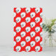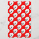 A pattern of white skulls on a red background. Original design with newsprint effect.  Black, white and red cartoon image.