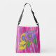 This large shopping tote not only has a gorgeous design with pink frangipani flowers on each side, it is soft, roomy and has a wide adjustable strap that fits across the body. Excellent printing. True to the picture.