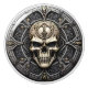 This Gothic drawer or door knob has a design on it resembling a shield with a skull in the center.