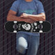 Skull Skateboard White Background with Leaves In Wind! design size, placement, and text customisation available! Don't forget to check the top of the page for PROMO CODES!