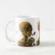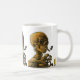 Vintage Van Gogh skull art on coffee mug. Skull is smoking a cigarette,