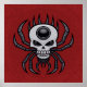 Vector cartoon illustration of a pointy clawed spiny orb-weaver spider with a mean skull design on his back.