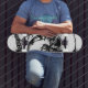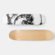 Natural skate board with a black and white illustrated picture of a skull on the spine floating with a skeleton hand reaching around. Edgy and artistic for the talented skater.