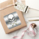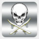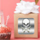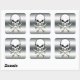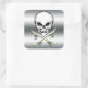 A skateboarding sticker with a skull and skateboards on a silver-grey gradient background. A perfect git for skateboarding kids and teens. They can start a collection and exchange them with friends.