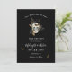 Hauntingly beautiful save the date invitation with Till Death Do Us Part saying and skull with butterflies and ferns on a black background. Perfect for a gothic or Halloween wedding. See our other gothic wedding ideas as well.