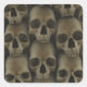 Skulls are stacked to form a wall, in this 3d computer rendering.