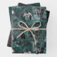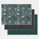 Skull Witch Floral | Dark Gothic Midnight Teal Wrapping Paper Sheet