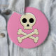 An illustration of a cartoon skull with bones for spooky halloween. This cute kawaii goth design is a gift idea for creepy or scary item lovers.