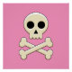 An illustration of a cartoon skull with bones for spooky halloween. This cute kawaii goth design is a gift idea for creepy or scary item lovers.