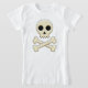An illustration of a cartoon skull with bones for spooky halloween. This cute kawaii goth design is a gift idea for creepy or scary item lovers.