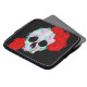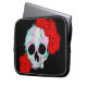 A laptop case featuring a pastel goth watercolor skull design with red flowers surrounding it. Makes a great gift idea for someone who likes pastel goth aesthetic style and skulls with roses.