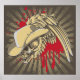 Skull with hat and wing on rays custom poster, featuring a cool skull with hat and wing in dirty yellow and taupe on grunge background.