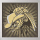 Skull with hat and wing on rays custom poster, featuring a cool skull with hat and wing in dirty yellow and taupe on grunge background.