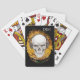 The design on these playing cards is of a smiling white skull wearing headphones. The image is placed on an abstract cracked gold background, which is then placed on a solid black background. Your monogram is in grey at the top right.