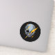 Original skull with lightening bolts design, great for bikes, skateboards, lap tops, cups, instrument cases, iPads. Blue grey skull with orange and yellow lightening bolt through the eye socket.