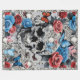 Wrap yourself in edgy elegance with our fleece blanket featuring a stunning skull adorned with red and blue roses and butterflies on a vintage lace background. Perfect for adding a unique touch to your home decor.