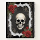An ivory skull with red roses is surrounded by a white frame on a textured black background on this beautifully Gothic notebook.