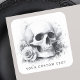 Sticker featuring a watercolor painting of a skull surrounded by roses, and your name or other custom text on the right.