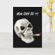 Skull with lit cigarette isolated on black for quitting smoking encouragement.