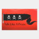 SKULLS AND CROSSED BONES RED BLACK PIRATE FLAG RECTANGULAR STICKER
