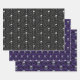 Totally, completely, and unabashedly Goth, this set of wrapping paper features skulls nestled into a background of flowers. One is white skulls amidst black, abstract flowers, another is white skulls among dark purple flowers, with one pinkish flower, and the third is white skulls in dark purple flowers. Great for any occasion, perfect for Halloween!